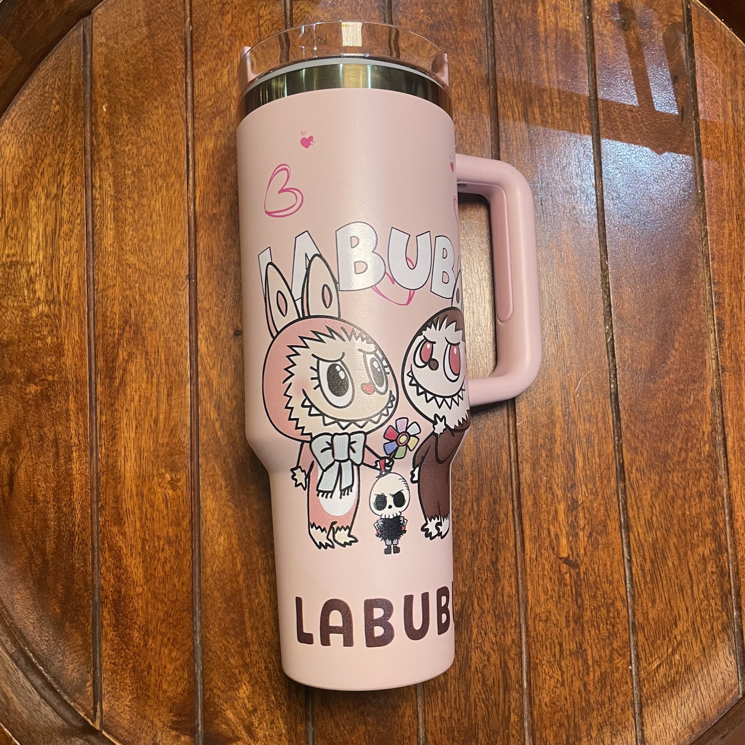 كوب أنيق بلون وردي ناعم مزين برسومات لطيفة تضيف لمسة مرحة ومميزة ليومك.