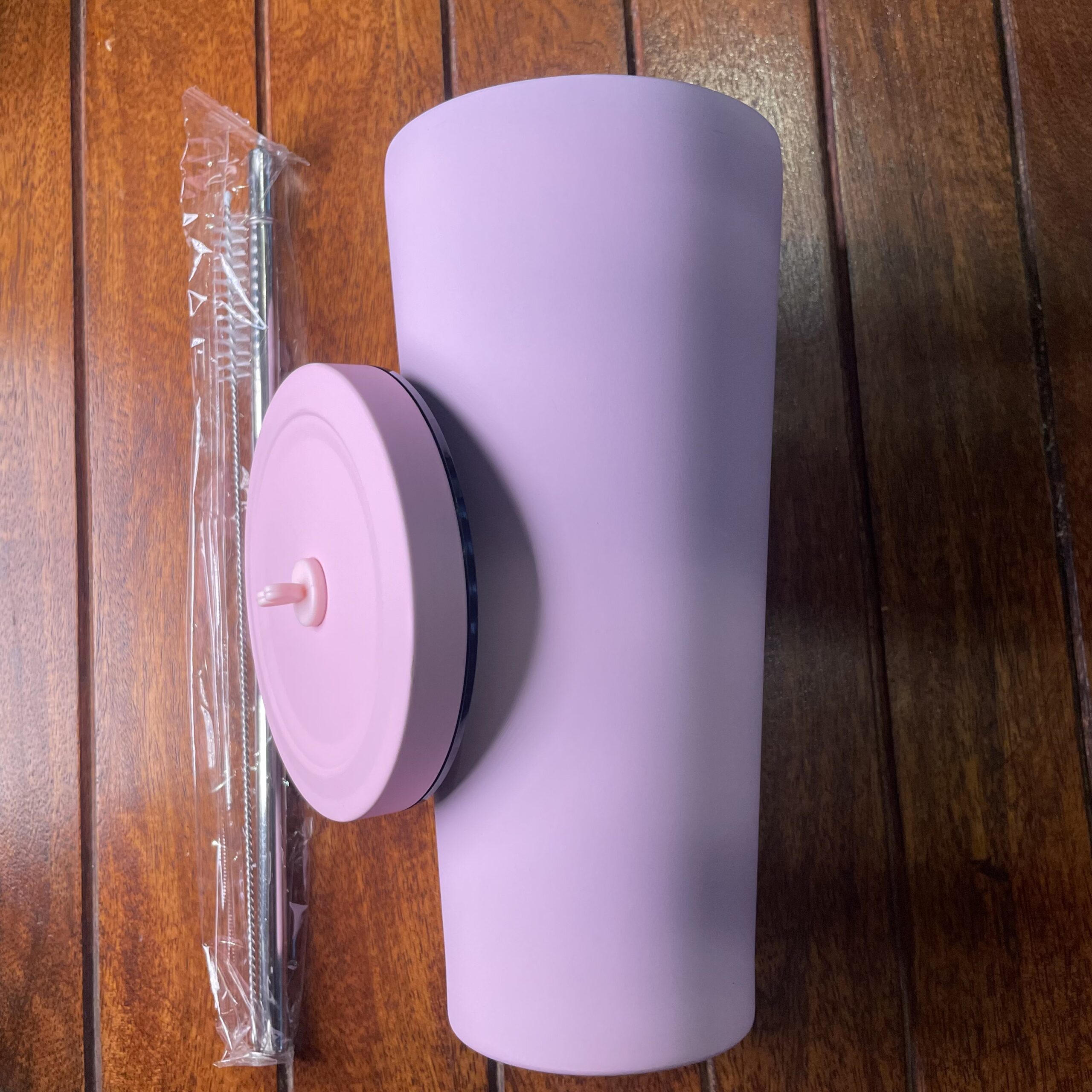 كوب حراري أنيق باللون الوردي الفاتح بلمسة مطفية فاخرة.