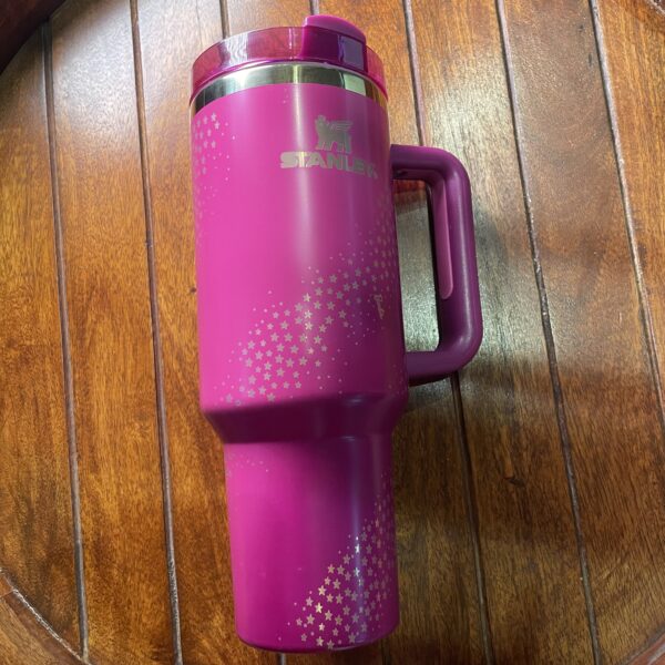 كوب حراري بتصميم لطيف بلون الفوشي مع الذهبي – حجم كبير مع مقبض جانبي